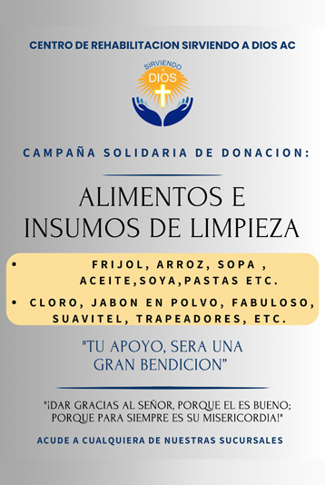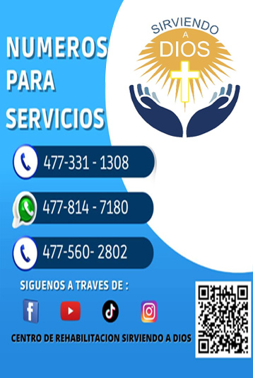 Centro de Rehabilitación Sirviendo a Dios AC, es una asociación mexicana fundada en el año 2016 en la ciudad de León Gto, con el propósito de brindar esperanza y restauración a personas atrapadas en el mundo de las adicciones.