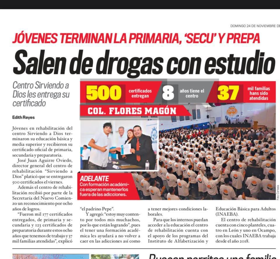 “Sirviendo a Dios” AC continúa creciendo como un instrumento de restauración y esperanza. Actualmente, contamos con 8 centros distribuidos en 2 estados de la República Mexicana, León, Gto y San Luis Potosí, México. Gracias a Dios y al compromiso de quienes comparten esta visión, hemos logrado extender nuestra cobertura internacionalmente, estableciendo presencia también en Chile , donde seguimos llevando el mensaje de libertad, fe y transformación a quienes más lo necesitan.